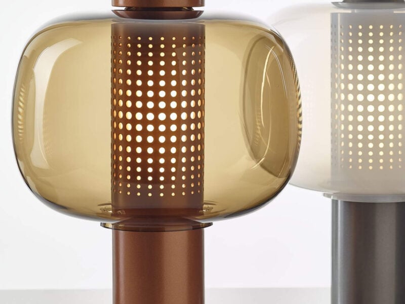 An expansion of his indoor sofa series Tape for Minotti, this collection of armchairs, sofas and chaise longues by Nendo introduces new proportions and materials suitable for al fresco lounging. The seats are deeper and larger, while the metal frame is covered with wicker-effect cords in two colours: “mud” and “liquorice.” Even the details – such as the piece of ribbon, now in a bronze-finished metal plate, that adheres the feet to the body – are hardier.