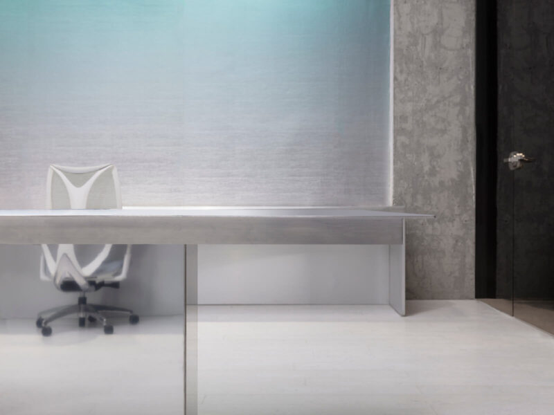 From the vantage point of the workspace, the partition modulates the graphic spaces, creating a burst of intense colour along the wall. However, when viewed from the communal core, the material transforms the bustling office into a choreography of abstract form and motion.