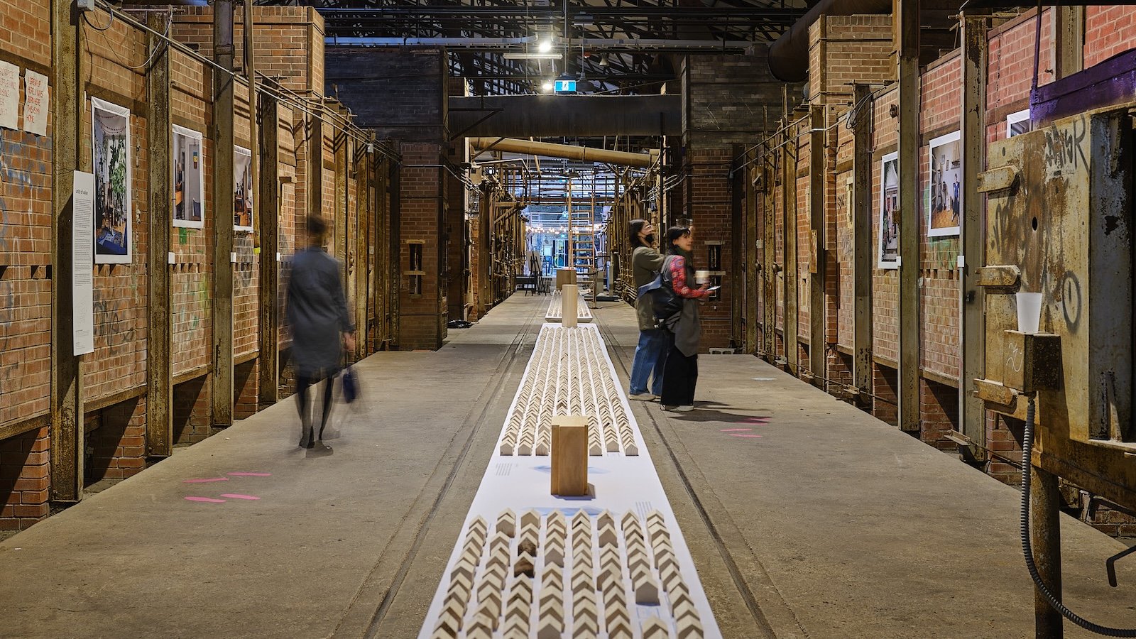 Today, Toronto’s Evergreen Brick Works is firmly embedded into the city’s cultural fabric. A century earlier, the site was embedded into the city’s industrial heart, producing some 25 million bricks per year during its 1920s peak. For two days in late October, these histories intertwined at AZURE’s Human/Nature conference, where a series of site-specific installations placed the Brick Works into dialogue with contemporary architecture and urbanism, transforming the dramatic long corridor of an erstwhile kiln into a locus of holistic design discourse. Below, we recreate the Building Value(s) exhibition’s wall text, along with images of the in-situ installations.