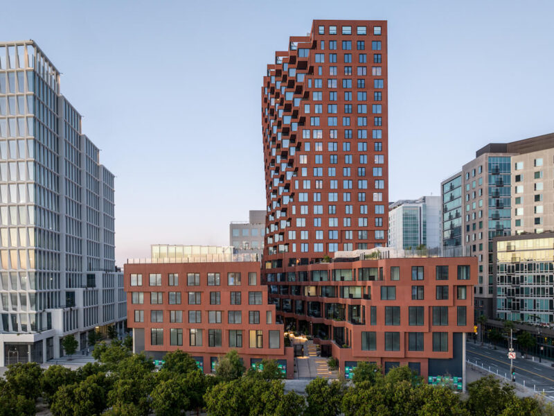 Led by Danish window manufacturer Velux and designed by local firm Effekt Architects with input from energy consultancy Artelia, the prototype consists of two full-scale homes and five open pavilions for hosting educational exhibitions and events, and all seven structures share a wooden deck. In between, trees and productive gardens are interspersed with public benches. It’s an ambitious test bed for healthy, socially oriented and low-carbon future communities; the homes boast substantially better air quality than the Danish average, and only a third of the embodied and operational carbon footprint. Yet it looks like something that could be assembled after a few weekend trips to Home Depot. What gives?