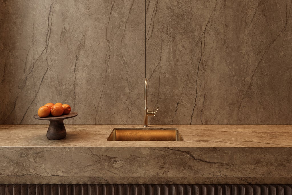 Architect Heather Dubbeldam (whose firm, Dubbeldam Architecture + Design, led the project) has a robust portfolio of residential projects, and her deep understanding of calm, comfortable homes proves especially valuable here. It’s easy to imagine a relaxed family meal playing out around the supersized island that anchors the showroom’s inviting kitchen vignette, or someone going about their morning routine in the bathroom area (complete with a Zoe Top integrated sink). And while surfacing can often be thought of as a cold material, Cosentino City Toronto’s wood accents help unlock the underlying warmth in Dekton collections like Pietra Kode, which takes its earthy inspiration from the Mediterranean, and Silestone ranges like Le Chic and Le Chic Bohème, which feature glam metallic accents.
