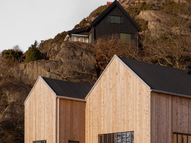 Designed for the family of three that own the property, the residence features a workshop on the lower level and living spaces above. Surrounded by a green roof, a trio of skylights flood the home’s uppermost storey in natural light.