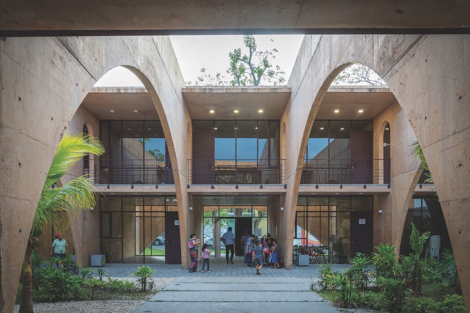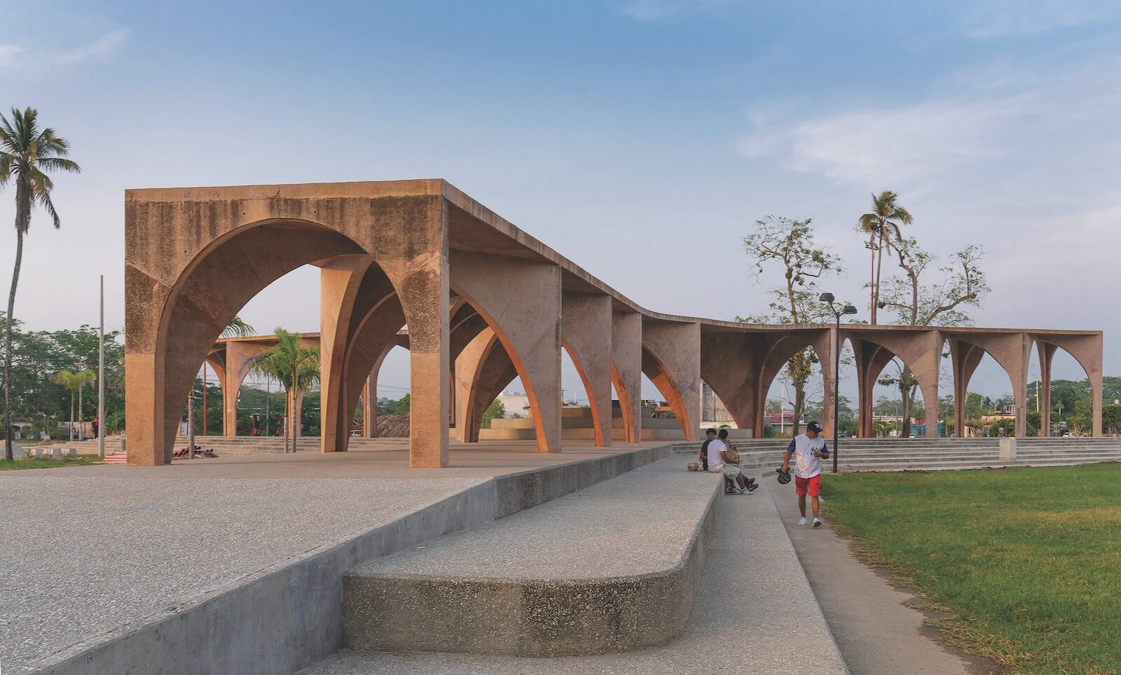 El Campestre Recreational Park & Community Development Center, by Bernardo Quinzaños and his firm, CCA, “rescues and transforms” one of the most iconic public spaces in Jalpa de Méndez, Tabasco. At the park’s centre is a pavilion with a crossed-arch structure (top); the Community Development Center (above) is a cultural and educational hub that promotes inclusive development opportunities for the local community. Photos by Jaime Navarro.