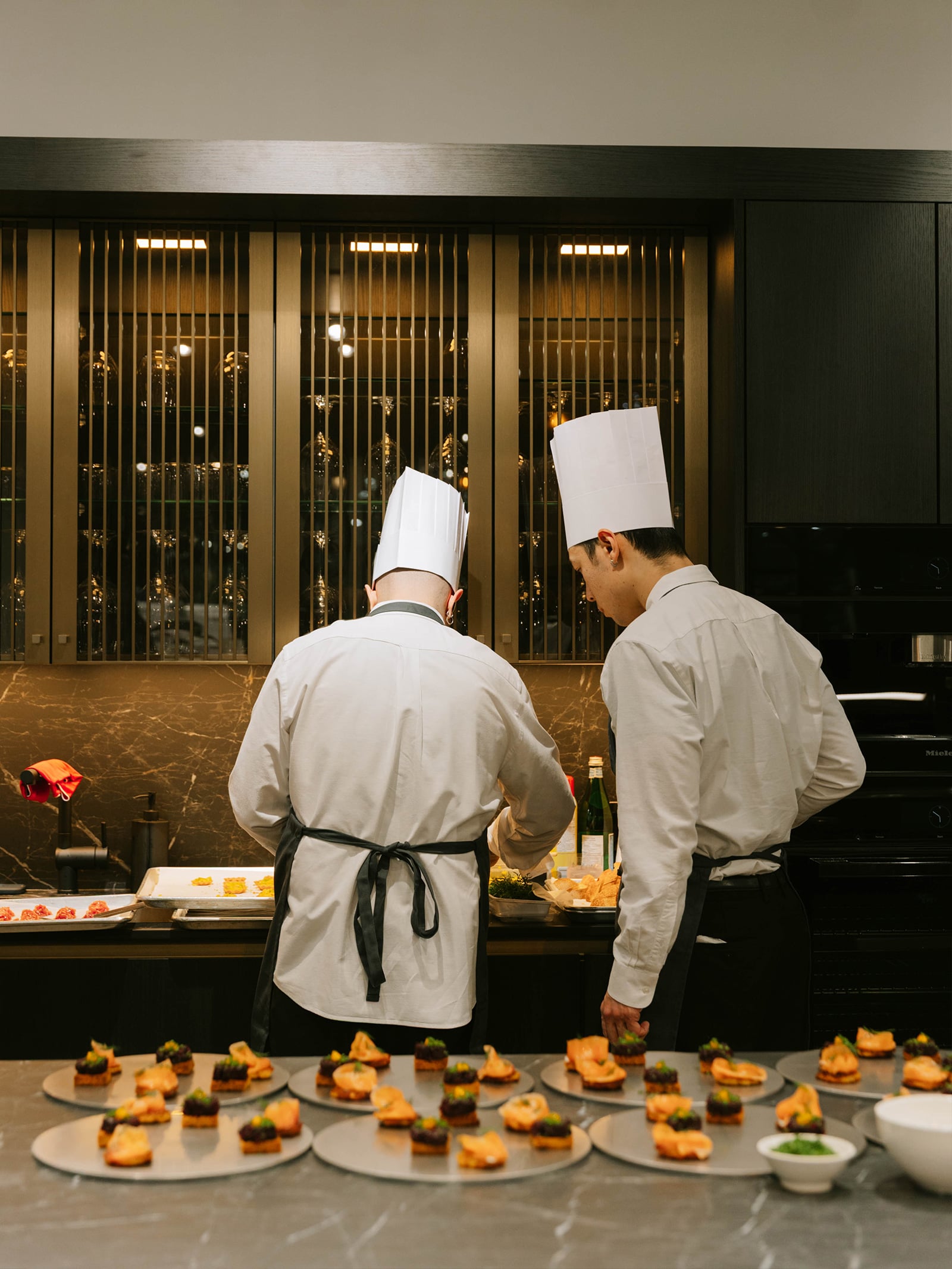Critically, the setup also creates ample room for conversation in a convivial live kitchen zone (built in partnership with SieMatic). “It’s a destination for consultation,” says Ekaterina Dobrokhotova, the company’s vice president of marketing. “The space is available for architects, designers and developers to have conversations with their clients, but then we are also going to be partnering with local chefs to help people experience the brand that way.” To kick things off, Miele fêted the new store by welcoming culinary studio Menu Extra (more on them in our upcoming spring issue…) into the space to cater an official ribbon-cutting held in February with Fresco and Dr. Miele. Before snacking on some boeuf du Québec and agnolotti topped with Louis d’Or cheese straight from Sainte-Élizabeth-de-Warwick, AZURE sat down with the duo to hear their take on today’s appliance industry.