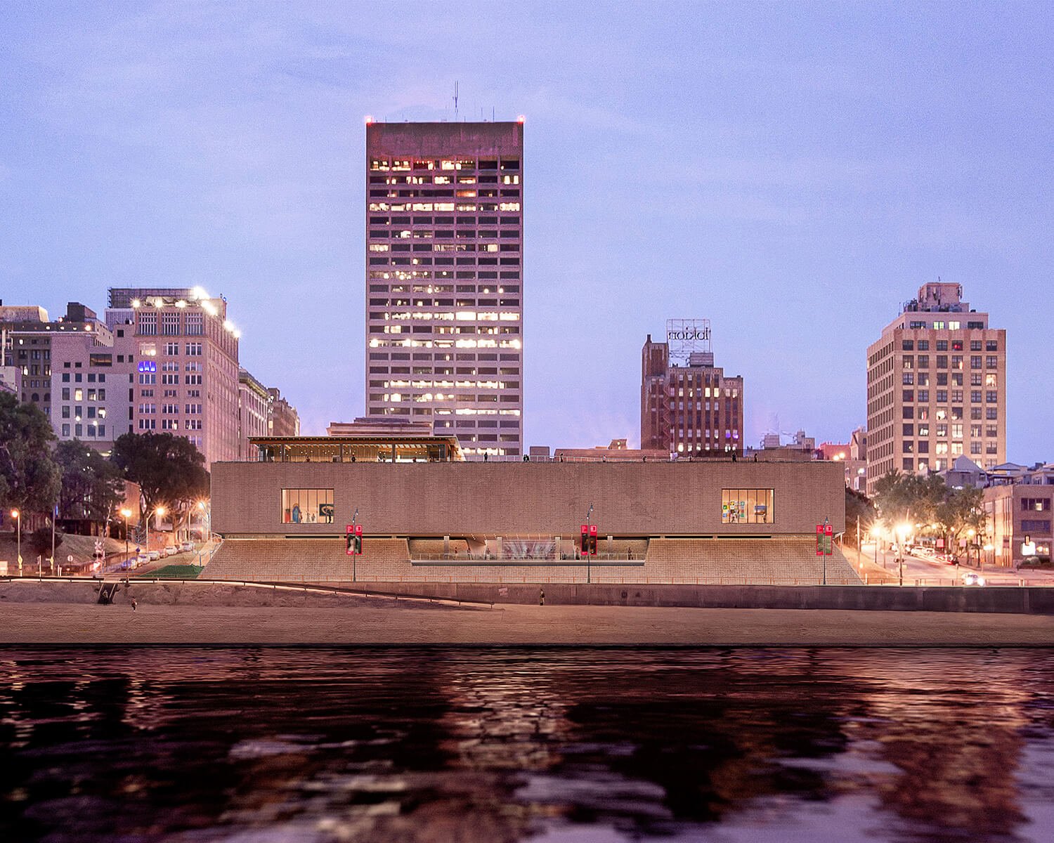 Herzog & de Meuron know how to make a statement. But the Memphis Art Museum, slated to open in December 2026, is proof that the Pritzker Prize-winning firm can also do understated. Rendered in natural tones inspired by the clay banks of the nearby river, the waterfront façade boasts a solemn, civic character; a long, horizontal “window” frames views of the Mississippi, a subtle invitation to come inside and explore. The street-facing elevation, meanwhile, is mostly glazed, blurring the boundary between the ground floor galleries and the sidewalk. It’s a fitting choice, given that accessibility is central to the museum’s mandate.
