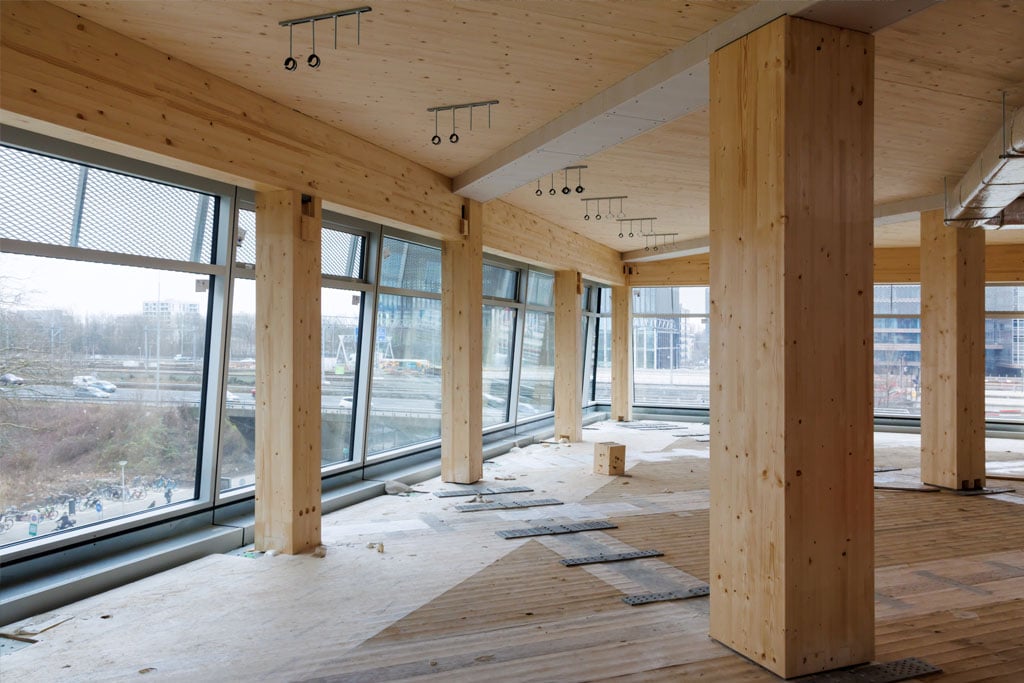 Banking group BNP Parabis and design firm Arcadis (which, along with INBO, served as CubeHouse’s Executive Architect) are set to be two of the building’s main tenants. But it isn’t just office workers who will benefit from the new landmark: Both the roof garden and the first floor (a collaborative events hub dubbed “The Cube”) are publicly accessible. Meanwhile, slanted support columns line the double-height lobby at the base of the building to animate the streetscape and confidently command a key corner of the city’s Zuidas district.
