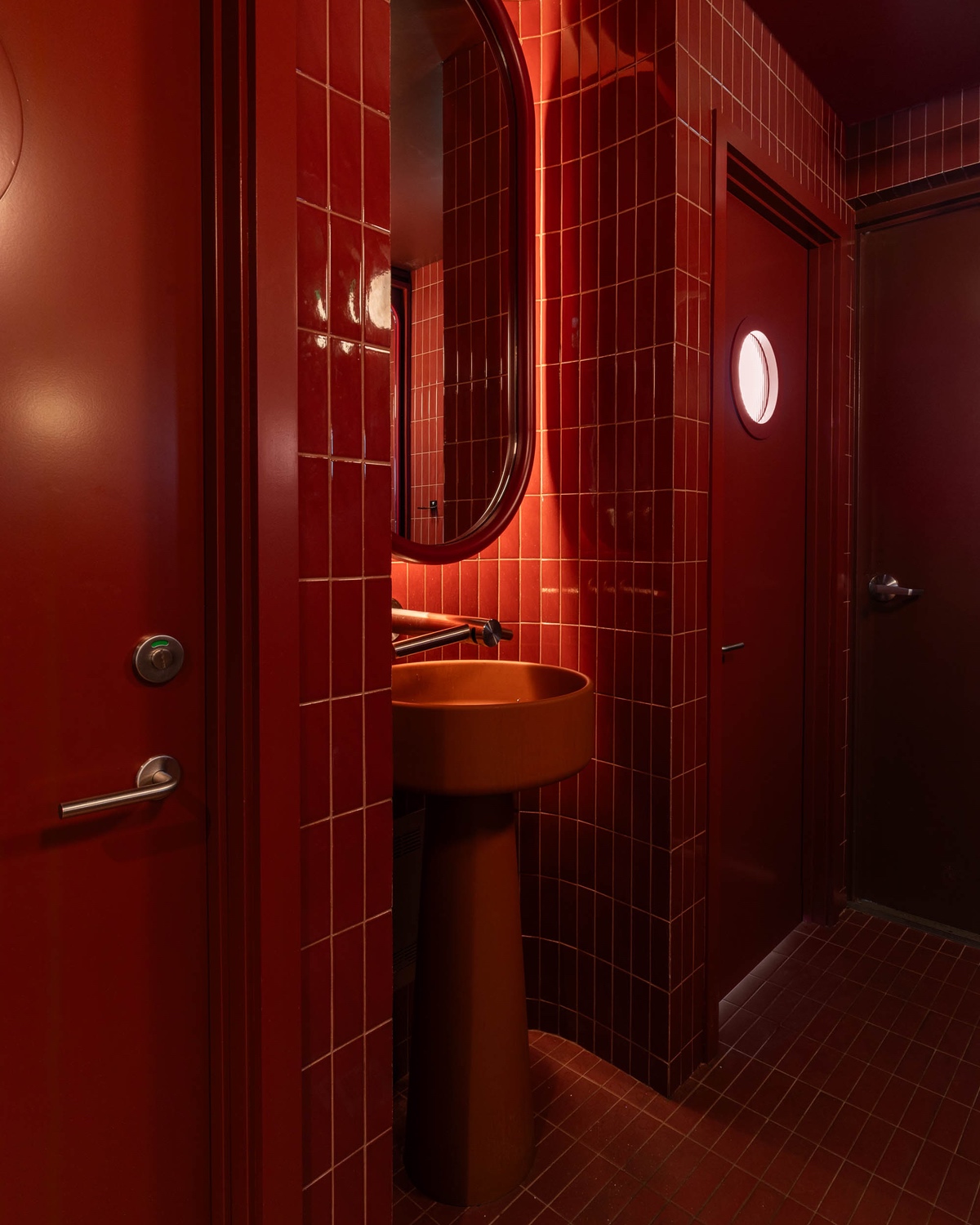 The tile-clad washroom zone, for its part, serve as the project’s final topping, splashed entirely in a red hue that is perfectly evocative of pepperoni. This holiday season, pizza night can’t come soon enough.
