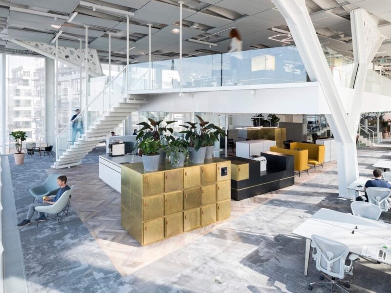For moments of respite, employees also have the option of private workspaces, enclosed offices and even a wellness room where staff can watch television or nap.