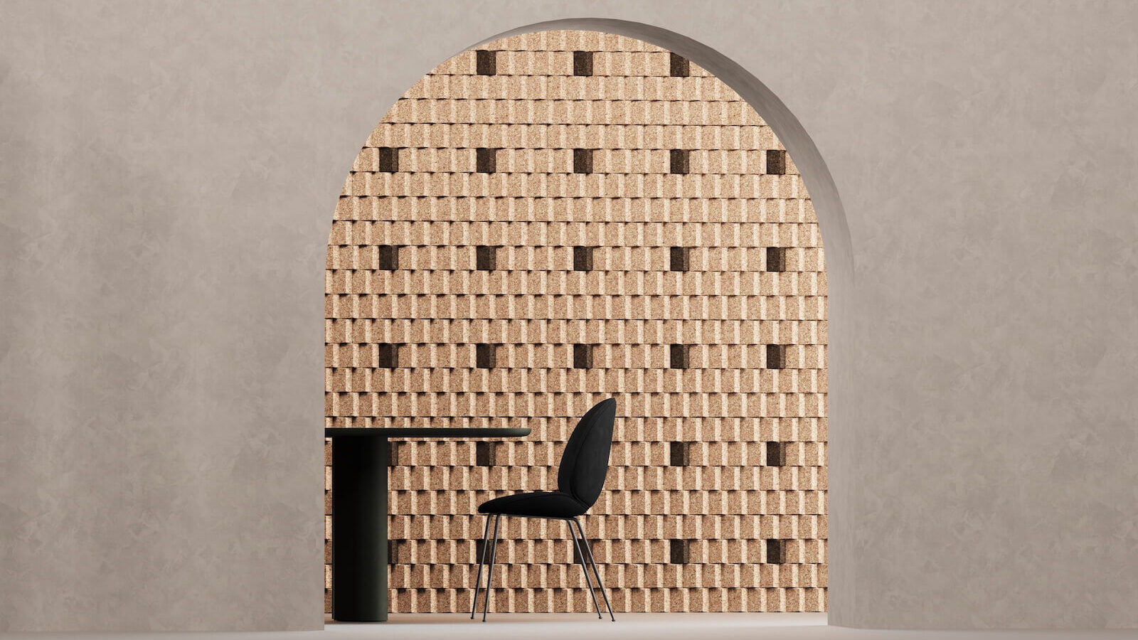 Cork might just be the ultimate sustainable material: It’s a truly renewable resource that can be harvested without destroying the cork oak tree from which it derives. Because of its unique cell structure, it offers high thermal and acoustic insulation and is naturally antibacterial and hypoallergenic. It’s also resilient and visually impactful.