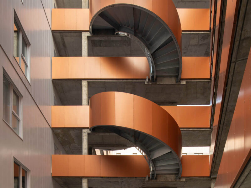 The units are modest in size, but what they lack in space is made up for in the building’s extensive, community-focused amenities available for residents only, which include everything from resident lounges to communal kitchens, screening rooms, co-working spaces, a gym and rooftop terrace. According to the architects, Roco’s social ethos seeks to integrate the building back into the life of the city.