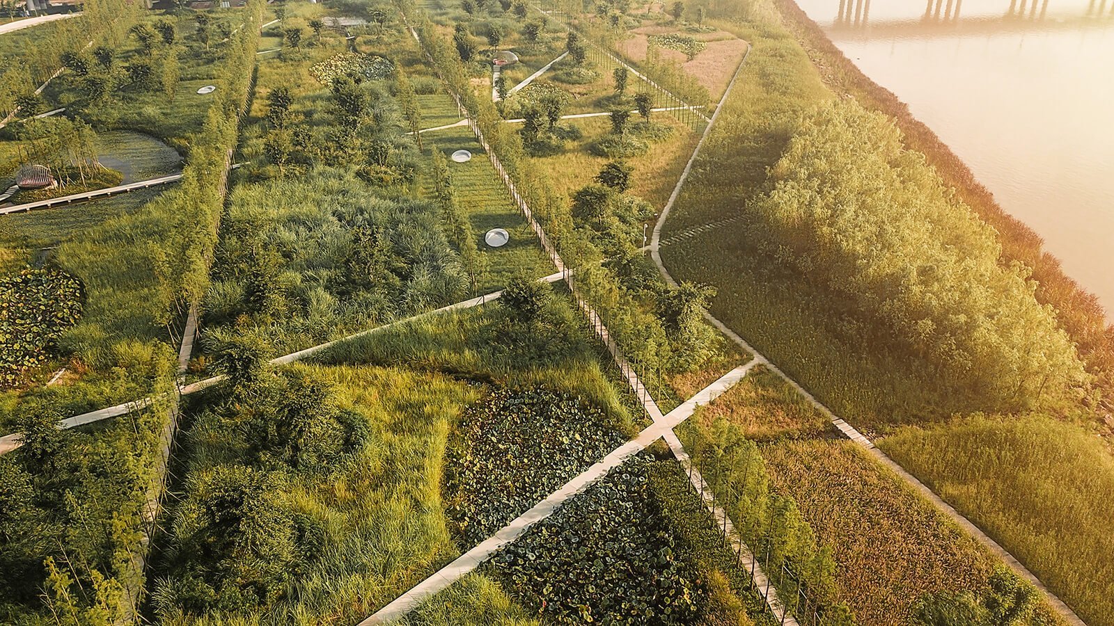 It is a portfolio of landscape icons, from the sloping terraces of Handan City’s 10-hectare Garden Expo to Huaiyang’s 43-acre Fuxi Cultural Park — the most recent of Turenscape’s many AZ Award-winning projects. Many of them remediate deeply scarred post-industrial sites, transforming shuttered factories and toxic soils into thriving, resilient ecosystems. In Nanchang, for example, the Fish Tail Park uses simple cut-and-fill techniques to recreate ancient Aztec garden systems, recycling the site’s former coal ash dump into a flood-resistant cluster of islets.