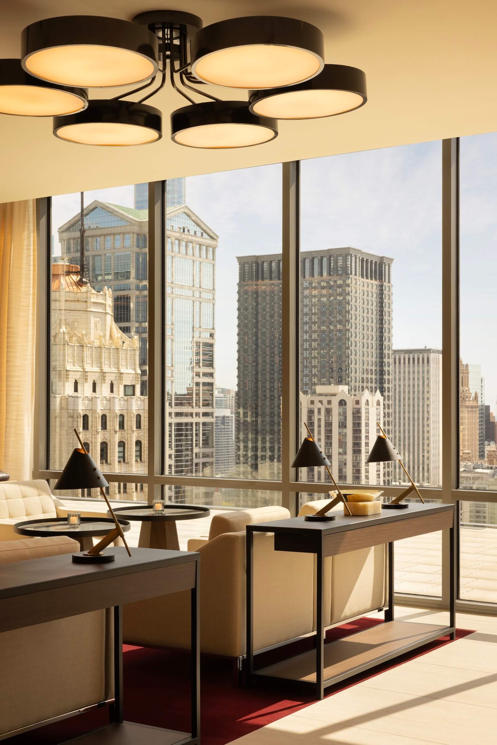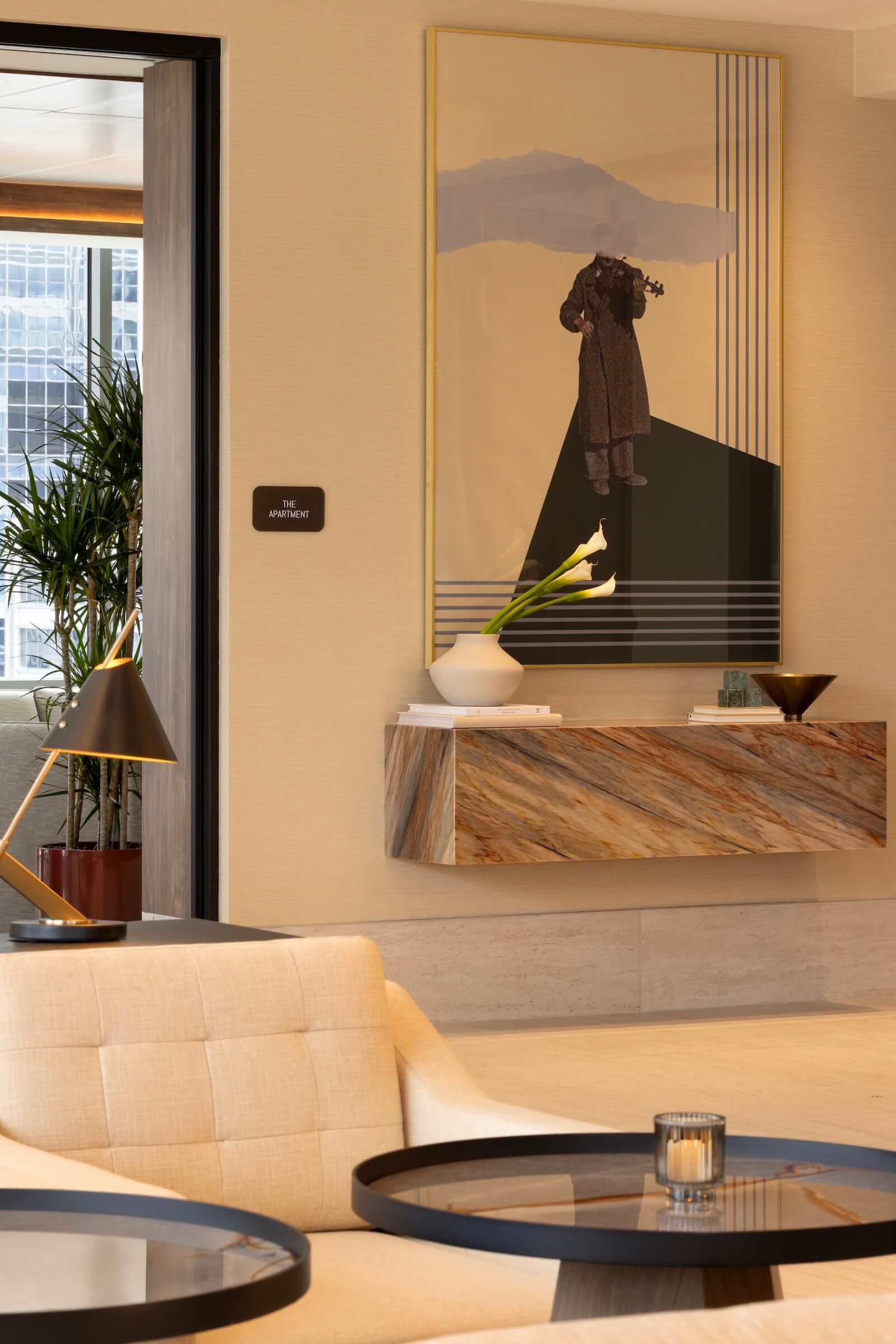 At the top of the tower lies a hosting-oriented hub. The Clubhouse is an open social environment with lounges, bar settings, and terraces overlooking the city, while in contrast, The Apartment is more contained and residential in terms of scale, layout, and atmosphere, and is geared toward smaller groups and private use. Together, these spaces operate as destinations rather than purely transitional zones.