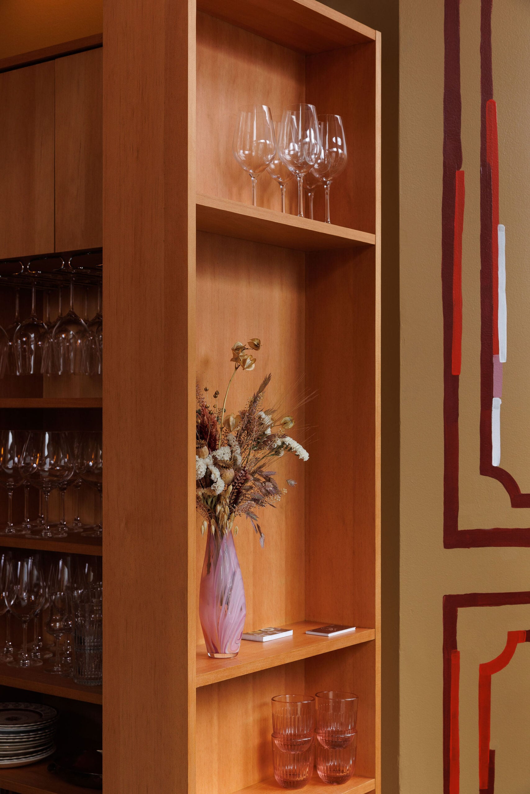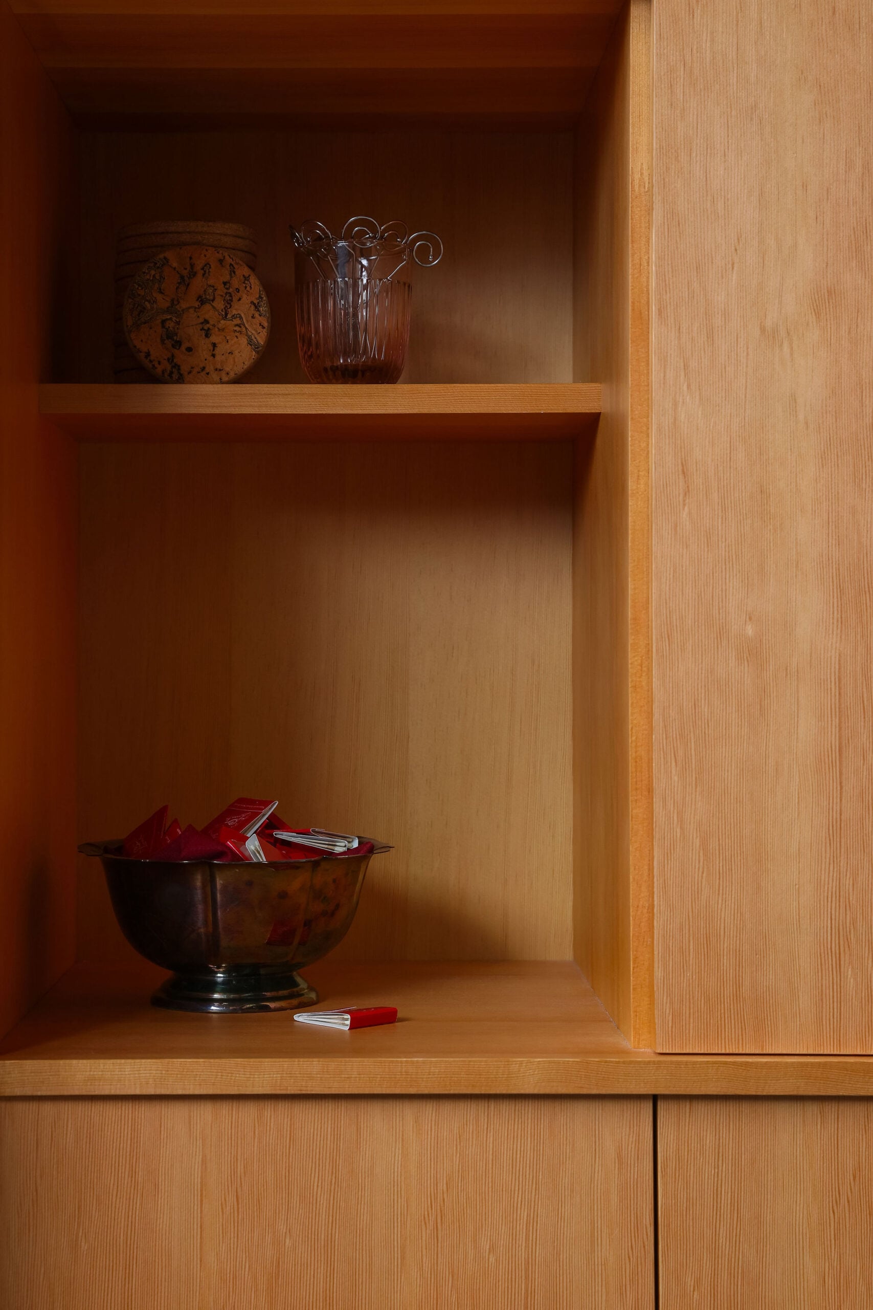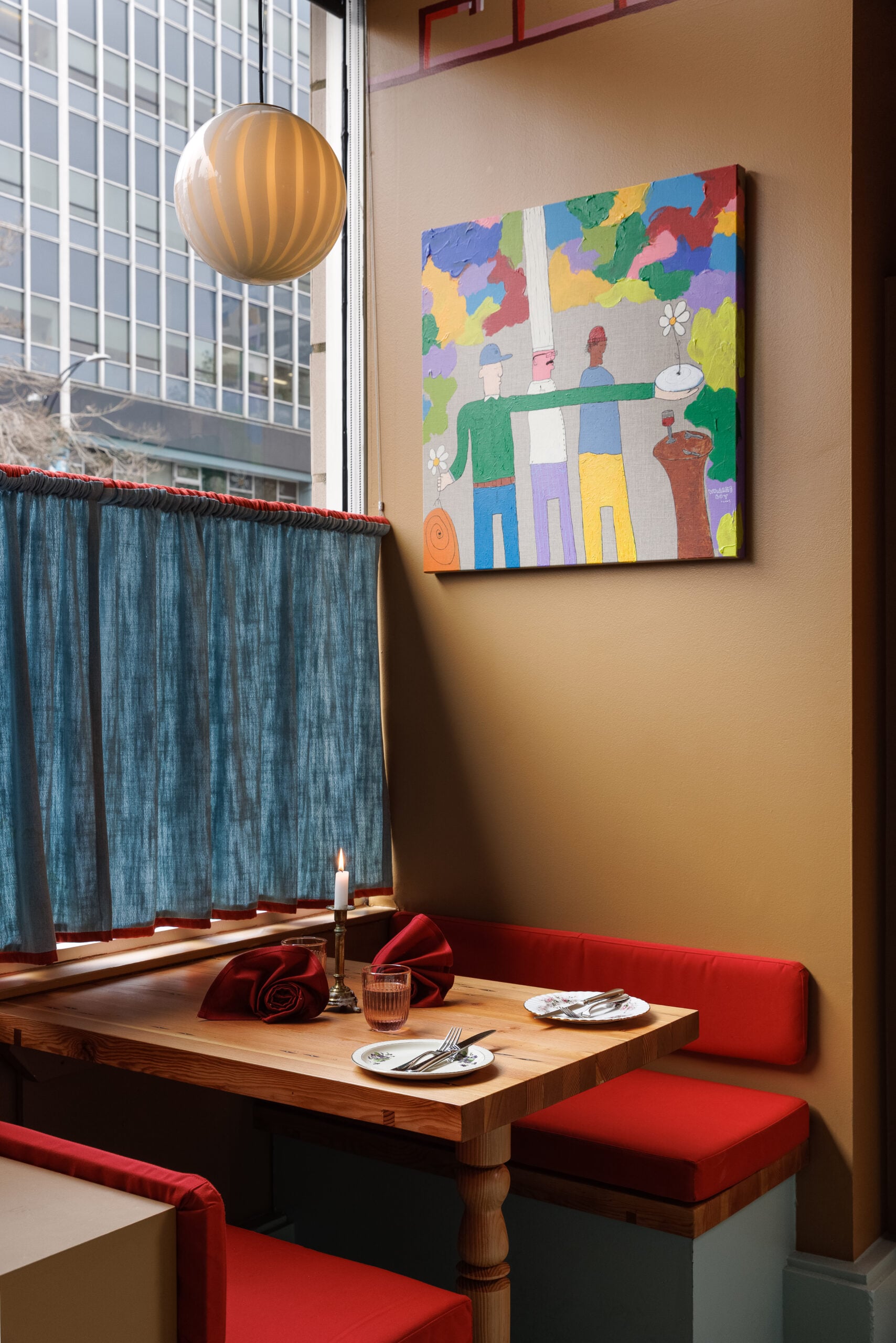 Zooming in further, decor serves as the project’s final layer, introducing an assortment of well-loved tableware sourced from Victoria nonnas, including Claire’s own grandmother. In another personal touch, the restaurant’s candlesticks were originally used for the owners’ wedding. In other words, the space is packed with the type of richly textured details that you only notice when you stop to take a breath.