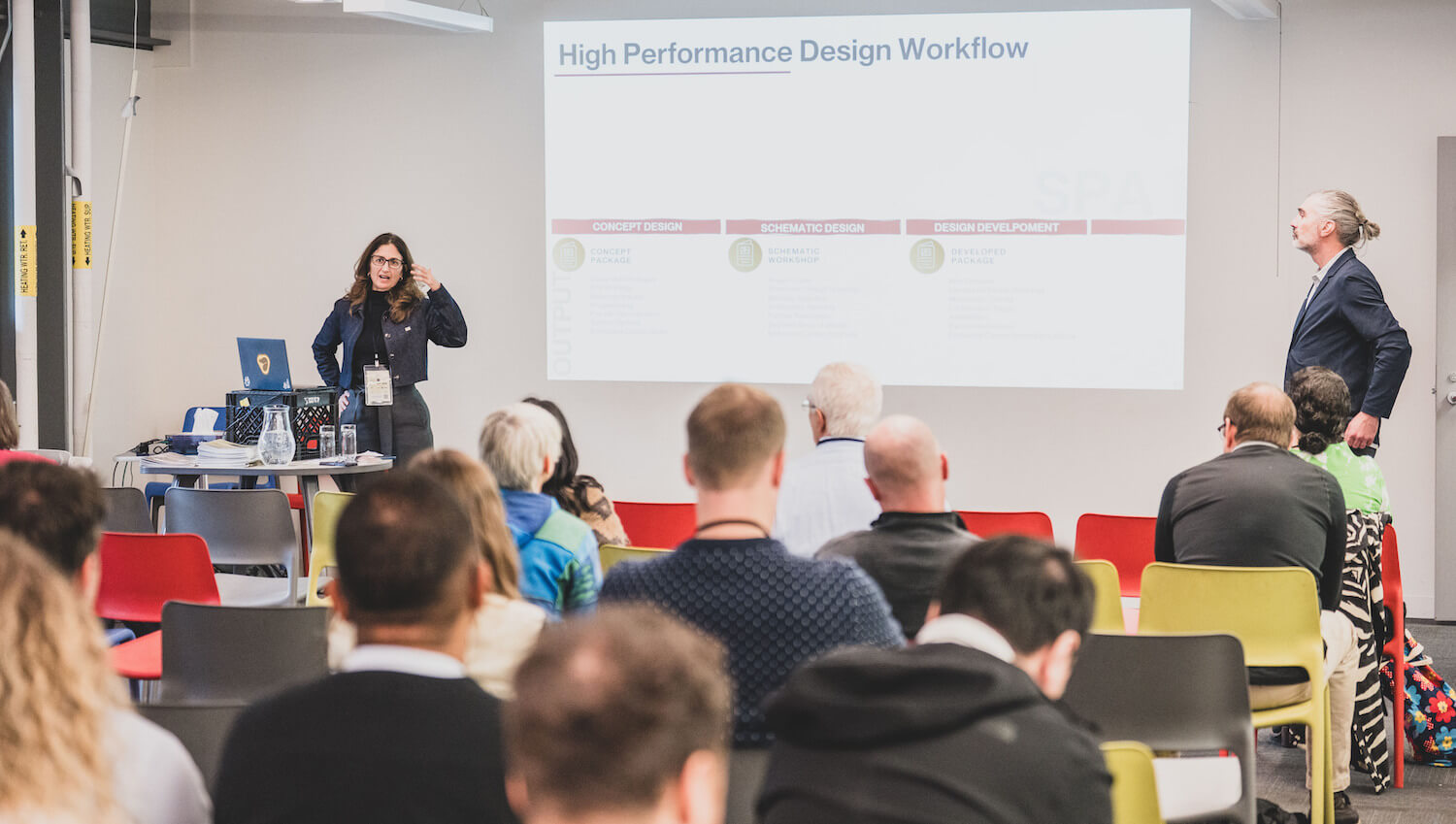 The same tension surfaced at the interiors scale, where sustainability often sits behind other client priorities. “If you asked the client, they’d never present this as a sustainable case study,” said Natasha Lebel of Plus Company’s new Toronto campus, who unpacked her surgical approach to the renovation of the Liberty Village office in a workshop on resilience in interiors. The project was a success in their eyes, not because it is an example of eco-conscious design, but because it delivered exactly the kind of workspace that supported the company culture — on time, and most importantly, on budget. The reality is that clients rarely ask to implement sustainable strategies — but that doesn’t mean it’s not worth doing. Lebel’s approach underscored a broader point echoed across the conference: sustainability often advances only when designers push for it. “Building codes represent the worst we can do,” echoed hcma’s Melissa Higgs in the Climate Intersections panel. “We need to push our clients to be better.”