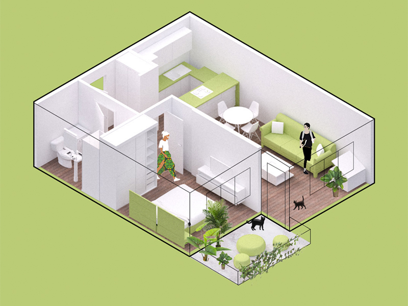 The competition participants are asked to imagine a new interior concept that interprets and investigates the relationships between the domestic and working dimensions. Participants are free to completely modify the interior spaces and the layout of the apartment, except the perimeter walls and windows. Participants can download the floorplan beforehand.