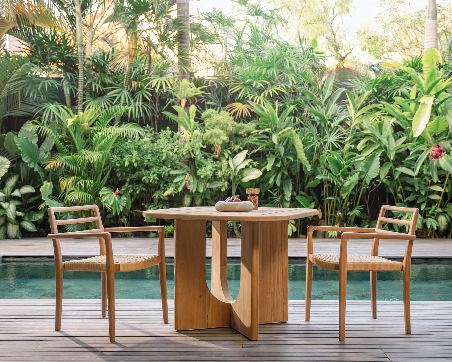 Handcrafted by skilled Indonesian artisans from sustainably sourced teak — which will develop a lovely silver-grey patina over time — the Darma Square outdoor dining table from Balè Homewares harmoniously blends clean modern lines with organic warmth.