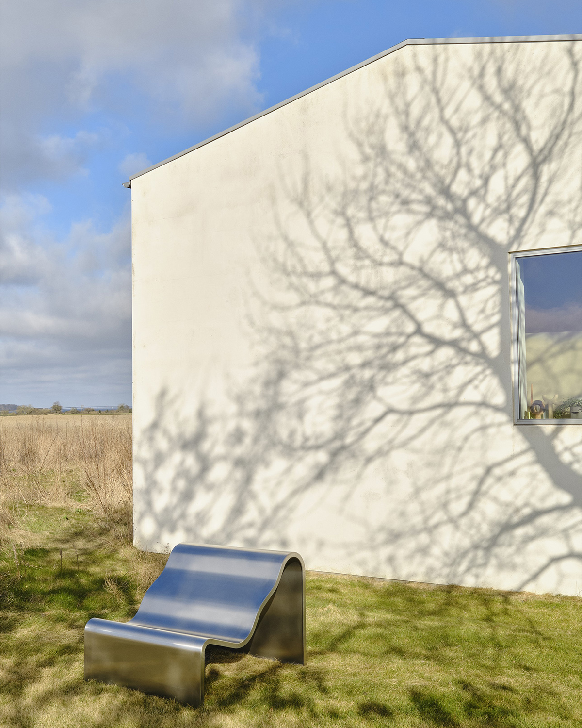 Designer Lise Vester began the creative process for the Dream View bench by the sea, mapping the natural curve of her own posture in the sand. From there, she made a Styrofoam prototype that was tested by family members with differing heights and then the overall structure was refined through the addition and subtraction of material until the ideal shape was reached, one that allows for most people to sit comfortably while gazing upwards to the sky.