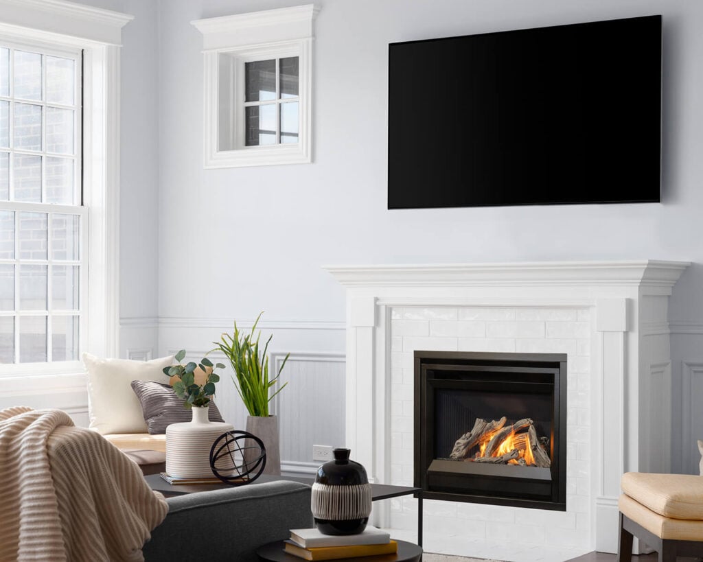 Because it is a direct-vent design (i.e. sealed combustion with intake and exhaust), Horizon draws fresh air from outdoors and exhausts combustion gases directly outside. This makes it safer and more efficient in tight building envelopes, and prevents indoor air from being used for combustion. Finally, Valor gas fireplaces do not require power to heat, meaning Horizon can provide energy-efficient, radiant heat even during a storm or power outage.