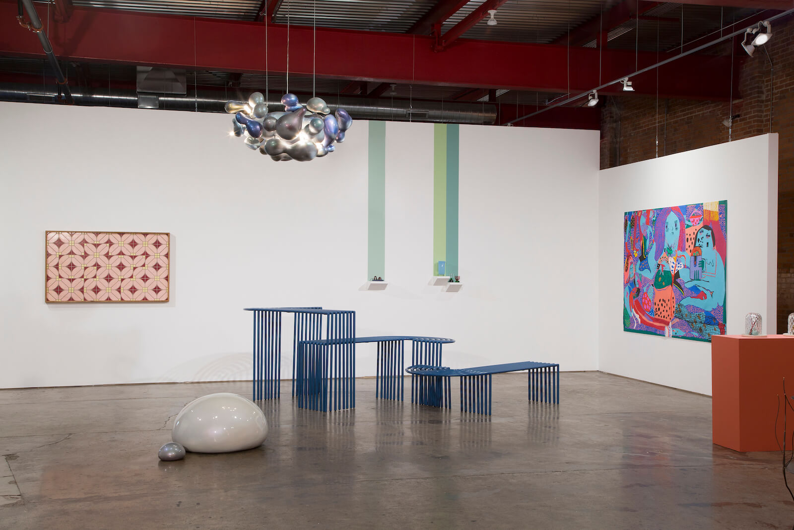 Bright reading area with seating area and decorative overhanging lights
