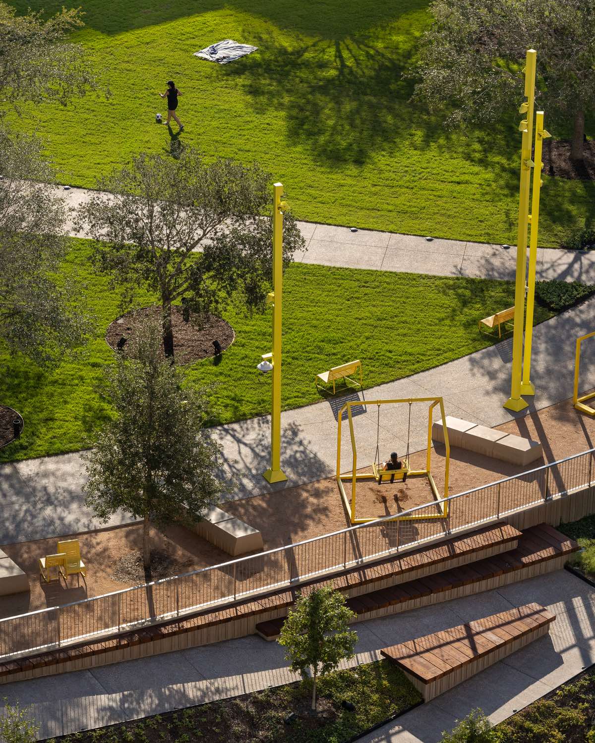 Re-used bricks and outdoor furniture by Hay animate Core City Park – along with 87 new trees.
